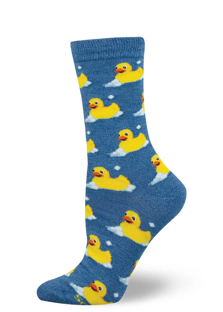 {"id":7744385744939,"title":"Rubber Duck Women's Bamboo Socks","handle":"rubber-duck-womens-bamboo-socks","description":"\u003cul\u003e\n\u003cli\u003e\u003ca href=\"https:\/\/www.crazysocks.com\/pages\/sock-lengths\" rel=\"noopener noreferrer\" title=\"sock lengths and heights\" target=\"_blank\"\u003eCrew length\u003c\/a\u003e\u003c\/li\u003e\n\u003cli\u003eU.S. shoe size: women’s 5–10.5, up to men's 8.5\u003c\/li\u003e\n\u003cli\u003eSeamless toe construction\u003c\/li\u003e\n\u003cli\u003e63% rayon from bamboo, 35% nylon, 2% spandex\u003c\/li\u003e\n\u003cli\u003eMade in China\u003c\/li\u003e\n\u003c\/ul\u003e\n\u003cp\u003eRubber ducks totally quack us up! These yellow toys brighten up bath time whether you’re a little kid or full-grown duck enjoyer. Comfy socks feature a faux floating waterfowl swimming in between bubbles, for a look that lets everyone know you are a kid at heart.\u003c\/p\u003e","published_at":"2025-11-23T15:16:33-08:00","created_at":"2025-11-23T15:14:36-08:00","vendor":"Socksmith","type":"Crew","tags":["Animal","Animals","Bamboo","Bird","Birds","Blue","Breathable","Crazy","Crew","Crews","Cute","Duck","Ducks","Fun","Girl","Girl's","Her","Ladies'","Novelty","Section D1","Short","Sock","Socks","Socksmith","Soft","Women","Women's"],"price":1200,"price_min":1200,"price_max":1200,"available":true,"price_varies":false,"compare_at_price":null,"compare_at_price_min":0,"compare_at_price_max":0,"compare_at_price_varies":false,"variants":[{"id":42515092701227,"title":"Blue Heather","option1":"Blue Heather","option2":null,"option3":null,"sku":"848292059029","requires_shipping":true,"taxable":true,"featured_image":{"id":36074302111787,"product_id":7744385744939,"position":1,"created_at":"2025-11-23T15:27:31-08:00","updated_at":"2025-11-23T15:27:32-08:00","alt":"Blue women's crew socks with yellow rubber duck pattern on a white background.","width":857,"height":1200,"src":"\/\/www.crazysocks.com\/cdn\/shop\/files\/rubber-duck-womens-bamboo-socks.jpg?v=1763940452","variant_ids":[42515092701227]},"available":true,"name":"Rubber Duck Women's Bamboo Socks - Blue Heather","public_title":"Blue Heather","options":["Blue Heather"],"price":1200,"weight":43,"compare_at_price":null,"inventory_quantity":20,"inventory_management":"shopify","inventory_policy":"deny","barcode":"848292059029","featured_media":{"alt":"Blue women's crew socks with yellow rubber duck pattern on a white background.","id":27736871075883,"position":1,"preview_image":{"aspect_ratio":0.714,"height":1200,"width":857,"src":"\/\/www.crazysocks.com\/cdn\/shop\/files\/rubber-duck-womens-bamboo-socks.jpg?v=1763940452"}},"requires_selling_plan":false,"selling_plan_allocations":[]}],"images":["\/\/www.crazysocks.com\/cdn\/shop\/files\/rubber-duck-womens-bamboo-socks.jpg?v=1763940452"],"featured_image":"\/\/www.crazysocks.com\/cdn\/shop\/files\/rubber-duck-womens-bamboo-socks.jpg?v=1763940452","options":["Color"],"media":[{"alt":"Blue women's crew socks with yellow rubber duck pattern on a white background.","id":27736871075883,"position":1,"preview_image":{"aspect_ratio":0.714,"height":1200,"width":857,"src":"\/\/www.crazysocks.com\/cdn\/shop\/files\/rubber-duck-womens-bamboo-socks.jpg?v=1763940452"},"aspect_ratio":0.714,"height":1200,"media_type":"image","src":"\/\/www.crazysocks.com\/cdn\/shop\/files\/rubber-duck-womens-bamboo-socks.jpg?v=1763940452","width":857}],"requires_selling_plan":false,"selling_plan_groups":[],"content":"\u003cul\u003e\n\u003cli\u003e\u003ca href=\"https:\/\/www.crazysocks.com\/pages\/sock-lengths\" rel=\"noopener noreferrer\" title=\"sock lengths and heights\" target=\"_blank\"\u003eCrew length\u003c\/a\u003e\u003c\/li\u003e\n\u003cli\u003eU.S. shoe size: women’s 5–10.5, up to men's 8.5\u003c\/li\u003e\n\u003cli\u003eSeamless toe construction\u003c\/li\u003e\n\u003cli\u003e63% rayon from bamboo, 35% nylon, 2% spandex\u003c\/li\u003e\n\u003cli\u003eMade in China\u003c\/li\u003e\n\u003c\/ul\u003e\n\u003cp\u003eRubber ducks totally quack us up! These yellow toys brighten up bath time whether you’re a little kid or full-grown duck enjoyer. Comfy socks feature a faux floating waterfowl swimming in between bubbles, for a look that lets everyone know you are a kid at heart.\u003c\/p\u003e"}